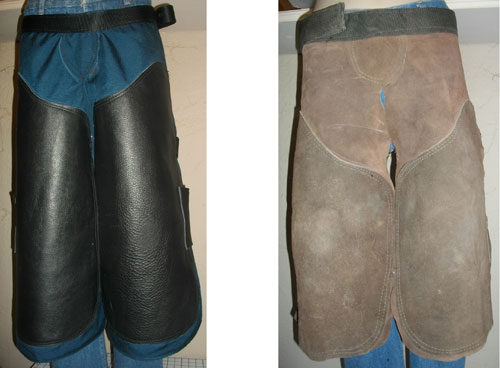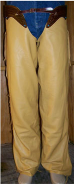 Ranch Working Chaps: Comes in batwing or shotgun full length zipper or buckles base price 375.00 4.5 to 5.0 top grain leather. Add pocket or knife pouch.